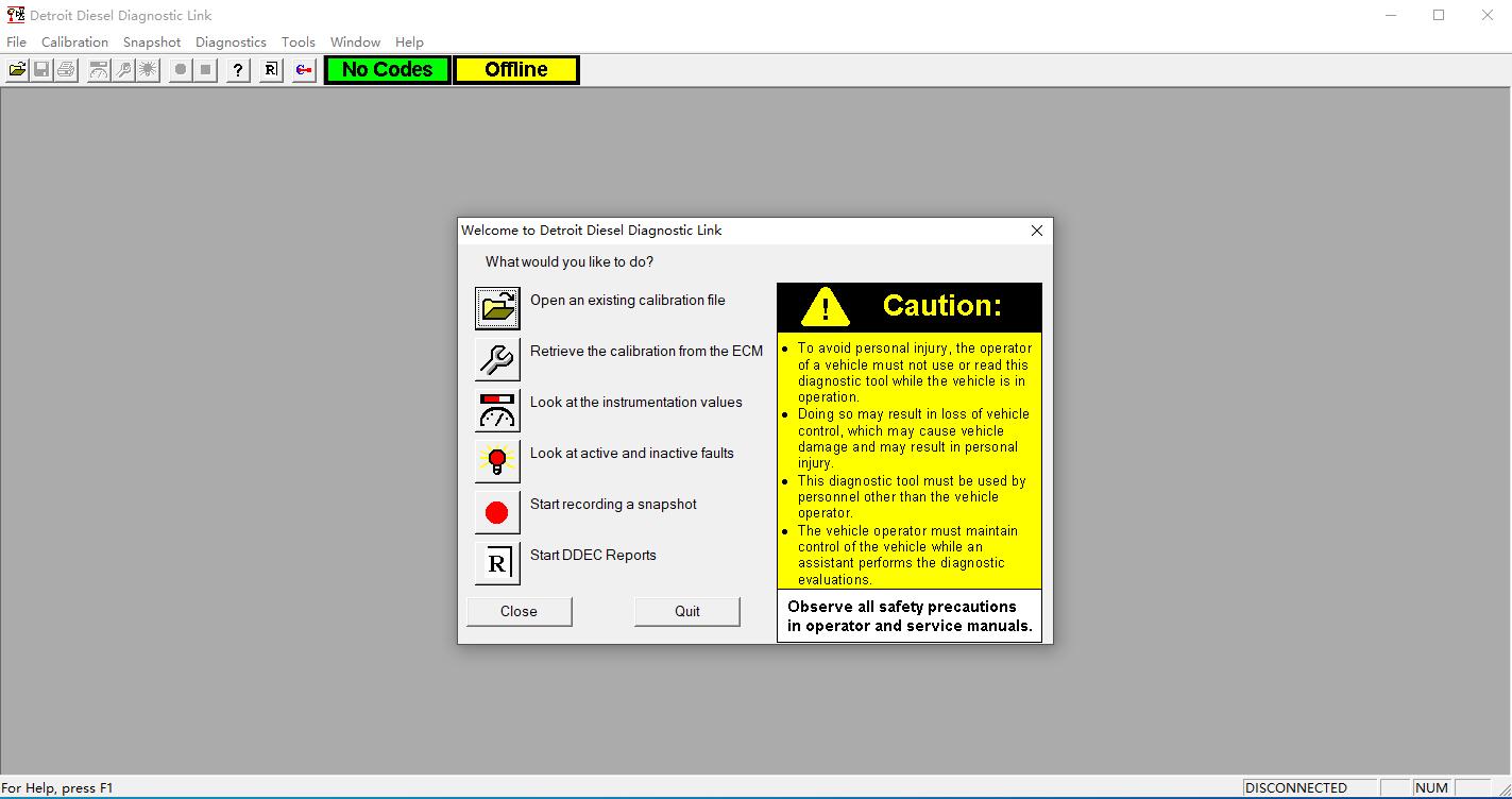 Software Detroit Diesel Diagnostic Link 6.50 allows the user to perform the following standard operations on both engine platforms: